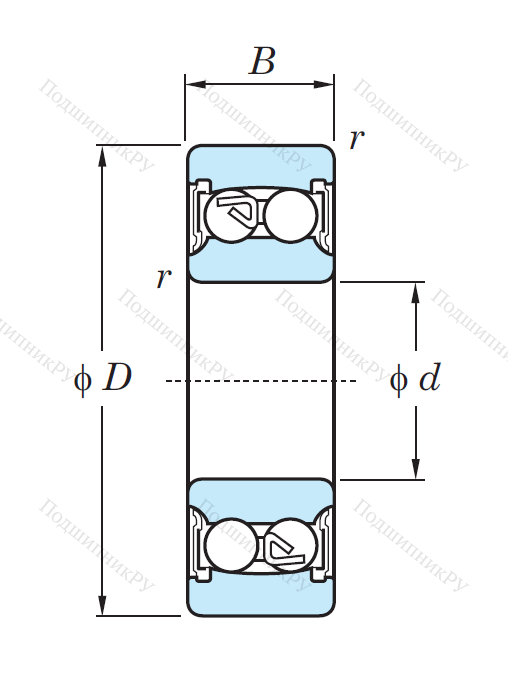 Двухрядный шариковый подшипник 2204 2RS