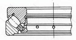 - Обладает более широкой зоной передачи усилий в сравнении с шарикоподшипниковыми аналогами, однако предназначен исключительно для работы с малыми скоростями вращения.