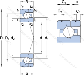 | Номинальная статическая грузоподъёмность | C0 | 14.6 | kN | |
